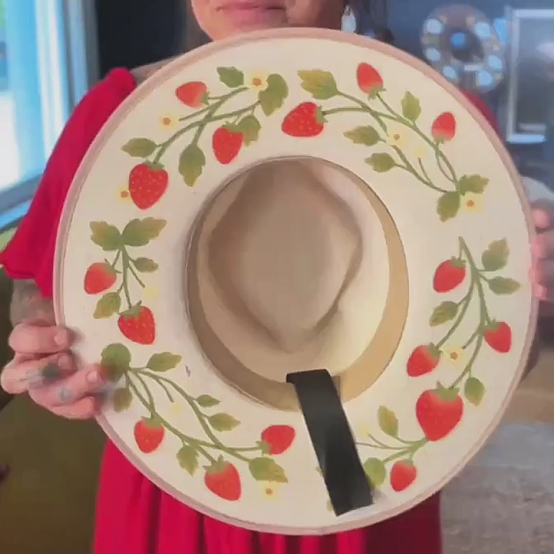 Embrace the charm of summer with The Cora Mae, an exquisite addition to Wild As Heck’s artisan collection, crafted by the talented designer Jess Miller. This rancher-style hat, adorned with vibrant strawberry and foliage illustrations, captures the essence of warm, sunny days and carefree elegance. Made from 100% premium Australian wool, a biodegradable and renewable material, The Cora Mae is as eco-friendly as it is stylish.
