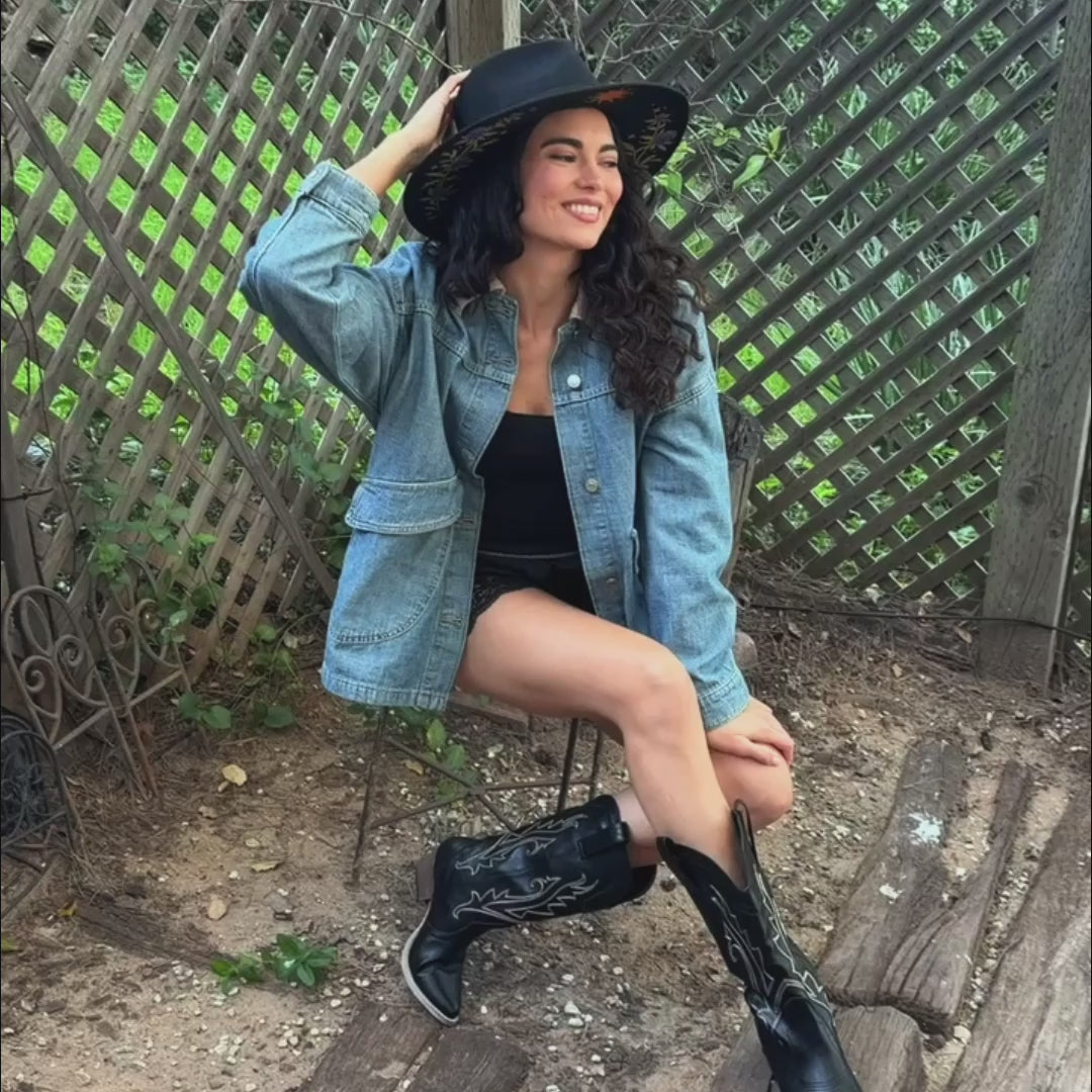 The Solstice Rancher features hand-applied artwork by the Wild As Heck design team. Also available in western style. Each hat is a one-of-a-kind piece of wearable art.
